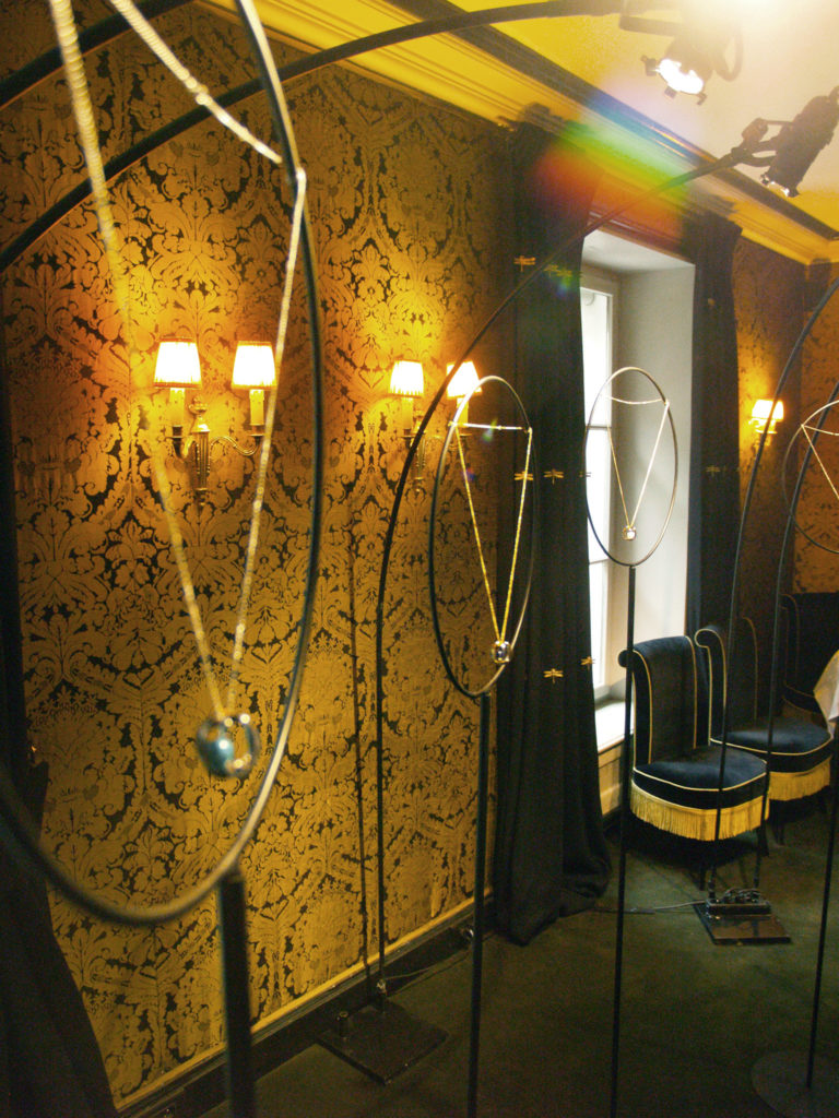 Des ballons suspendus dans l'air rappelaient les déclinaisons d'or jaune et d'or blanc des pendentifs.
