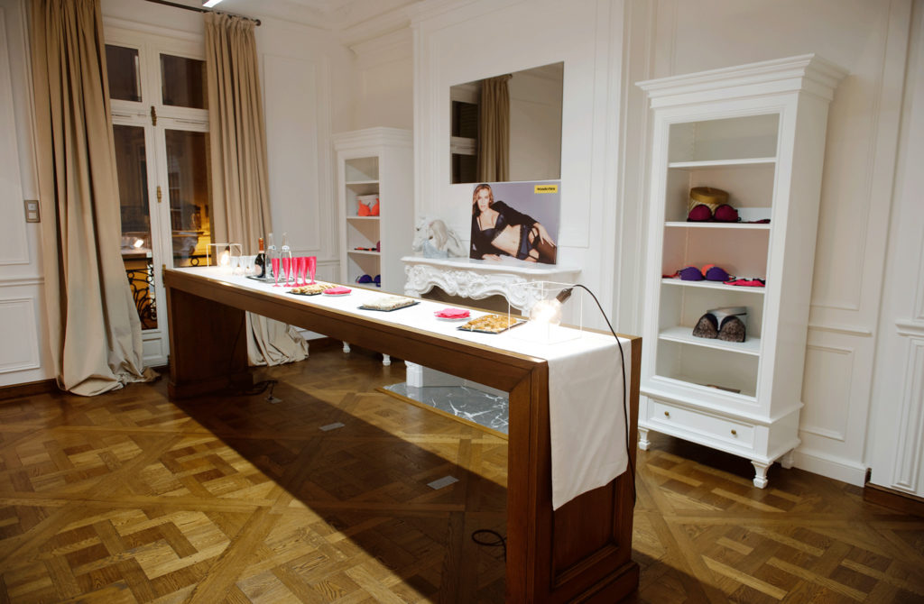 C'est au nouveau SPA Trandline que les journalistes spécialisées ont pu découvrir la collection printemps-été 2015. Les ensembles de lingerie étaient exposés sur cintres, dans des dressings par gamme de couleurs et par type de garde-robes.